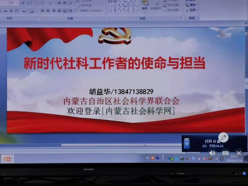 为深入学习贯彻习近平总书记关于“不忘初心、牢记使命”主题教育系列重要指示精神,将主题教育活动推向深入,真正做到学深悟透、融会贯通、真信笃行,2019年10月24日下午,yl7703永利集团党总支邀请内蒙古自治区社会科学界联合会巡视员胡益华同志在田楼432会议室作了题为“新时代社科工作者的使命与担当”的学术报告。报告会由党总支书记高林广主持,学院全体党员和教师聆听了讲座。
