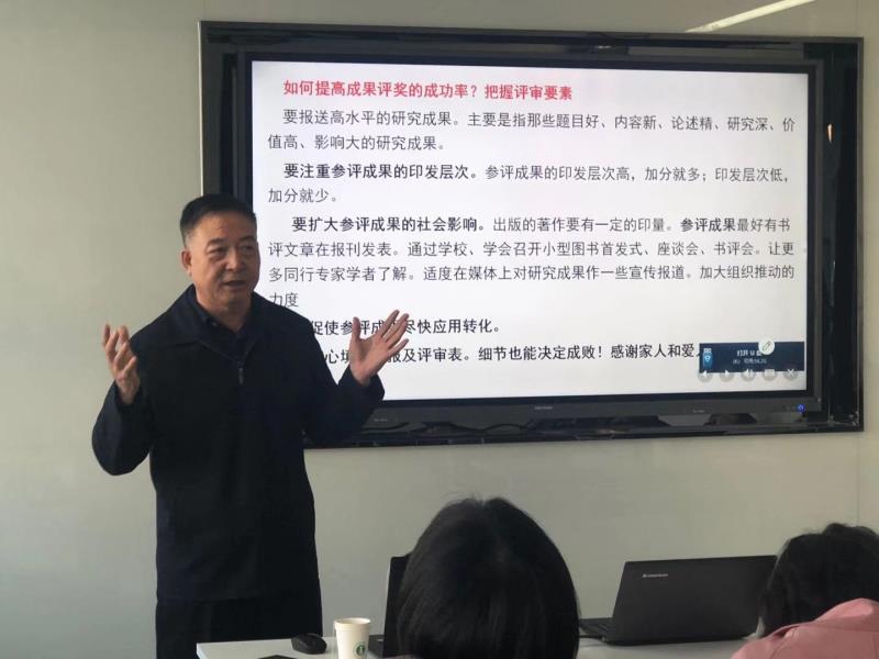 报告中,胡益华巡视员围绕中国共产党人的初心和使命以及中国特色社会主义进入新时代、我国社会的主要矛盾变化谈起,重点阐述了新时代社科工作者的使命与担当。他指出,新时代的社科工作者,要以习近平新时代中国特色社会主义思想为指引,牢牢把握时代脉搏,紧跟时代步伐,多出符合国家战略与人民需求的精品研究成果。同时,他还结合习近平总书记有关教育问题的系列讲话精神,具体阐释了高校教师的使命与担当,并就项目申报与成果评奖的方法等与我院教师进行了交流。他指出,好的选题一般具有新、深、实、活、通的特点,好选题一般具有五方面的特点:一是目前无人涉足的研究领域或选题;二是站在学科前沿、引领学科发展方向的选题;三是对老问题的新视角挖掘,或交叉学科研究选题;四是对科学决策、学科发展有重要参考价值的选题;五是具有地方特色、民族特点、学科优势的课题。最后,他勉励大家做学术研究的开拓者、做社会风尚的引领者,做党执政的坚定支持者。