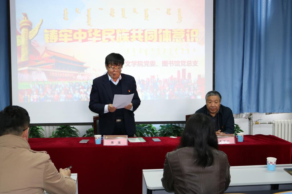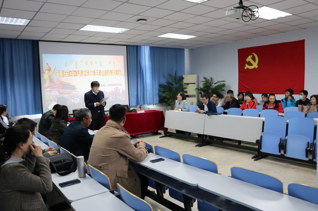 响应自治区、学校关于紧紧扭住、铸牢中华民族共同体意识这条新时代民族工作主线的指示精神,2020年10月8日下午,我院党委与图书馆党总支在赛罕校区图书馆共同联合开展了“铸牢中华民族共同体意识”主题党日活动。