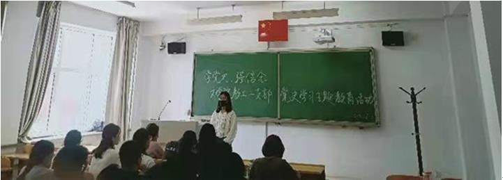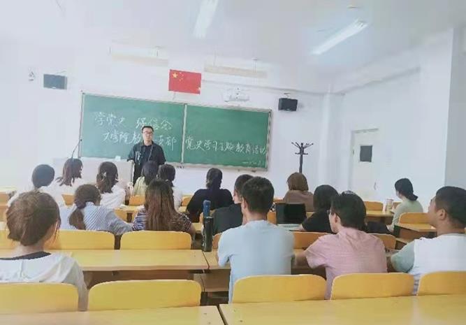 2021年9月3日,教工二支部支委杨永红博士在盛乐校区行知楼214室组织开展了“学党史,强信念”——yl7703永利集团教工二支部党史学习教育。2019级普师三班的预备党员和入党积极分子参加了活动。