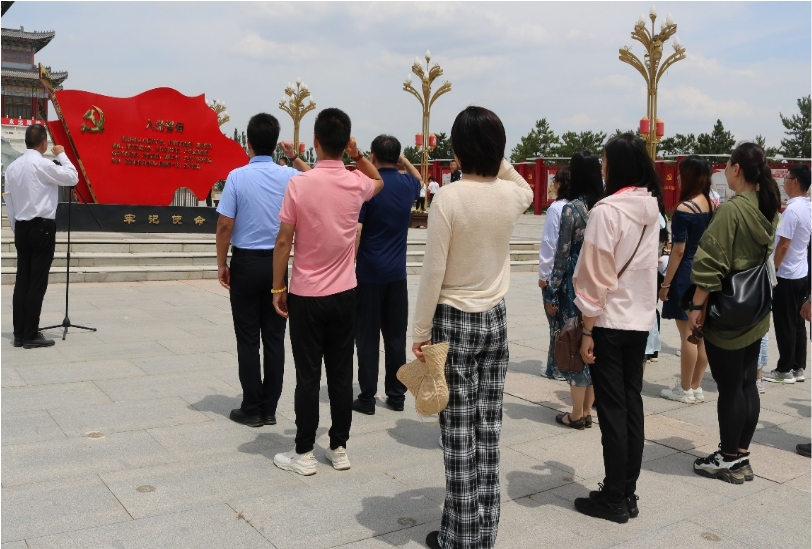 参观结束后,全体党员同志在绥蒙革命纪念园党旗前,庄严举起右拳,重温入党誓词。