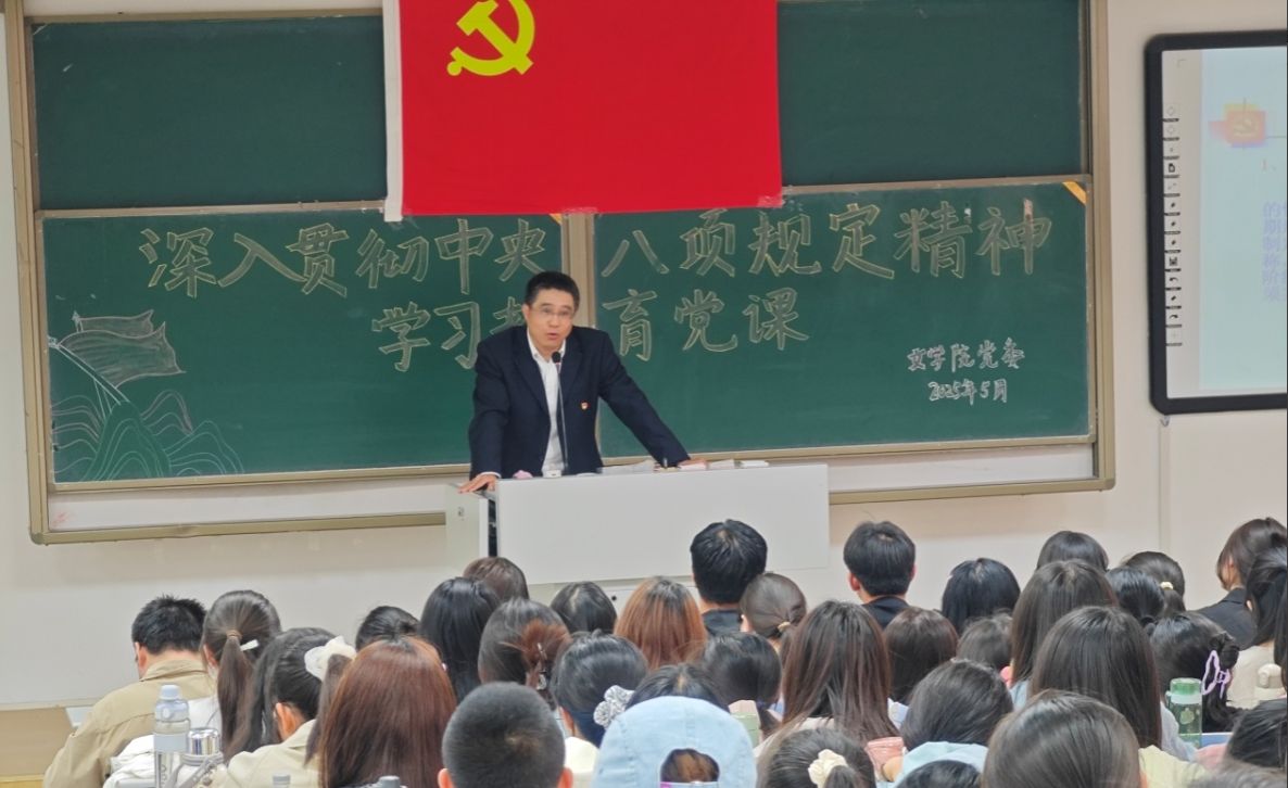 2025年5月13日,在盛乐校区行知楼109教室,yl7703永利集团党委副书记、副院长牛海龙以《深入贯彻中央八项规定精神——加强作风建设,廉洁自律》为题,为yl7703永利集团本科生、研究生党支部全体在校学生党员,第二十二期积极分子、第八期青马班学员讲授专题党课。