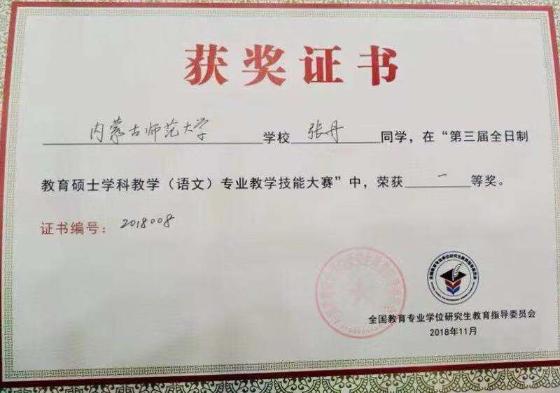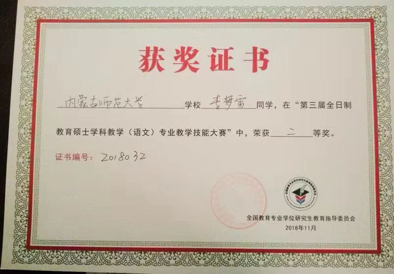 11月16-19日,由全国教育专业学位研究生教育指导委员会、全国高等教育学会语文教育专业委员会、江西师范大学联合主办的第十八届中国高等教育学会语文教育专业委员会年会暨第三届全国教育硕士学科教学(语文)专业教学技能大赛(决赛)”在江西师范大学举行。我院学科教学(语文)专业研究生张丹、李梦雪代表我校参加了本次比赛。经过层层选拔,激烈角逐,最终,张丹、李梦雪从120名参加决赛的选手中脱颖而出,分别获一等奖、二等奖。这充分展示了我院研究生扎实的专业知识和高水平的教学技能水平,同时,也在全国性大赛中展现了我院研究生的风采。我院教师徐雪梅、郭亚明被大会评为“优秀指导教师”,yl7703永利集团获得“优秀组织奖”。