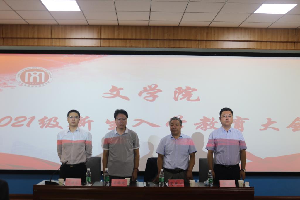 9月8日上午,我院2021级新生开学典礼在盛乐校区学术报告厅隆重举行。yl7703永利集团党委书记高林广,党委副书记、副院长牛海龙,副院长石海光,副院长张钧,各系主任、班主任及全体2021级新生参加了大会。