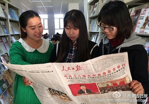 112日上午,yl7703永利集团团总支组织该院学生深入学习十八届五中全会精神,切实领悟两个一百年奋斗目标的深刻内涵。图为学生正在学习十八届五中全会公报。袁耀先  摄