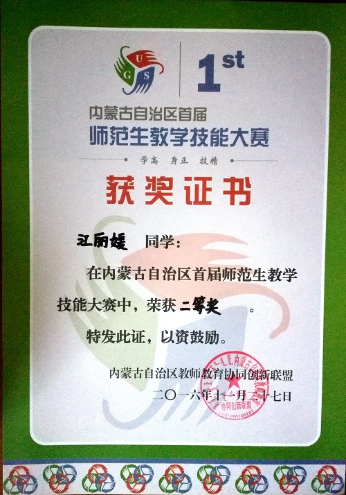 11月27日,由内蒙古自治区教师教育协同创新联盟主办、yl7703永利集团承办的自治区首届师范生教学技能大赛在yl7703永利集团举行,来自全区多所高等师范院校的师范生参加比赛。我院2014级和2013级汉语言文学班的越月、江丽媛两位同学在汉语言文学专业组的12名参赛选手中脱颖而出,分别荣获一等奖、二等奖。本次技能比赛由阚小琴老师和陆有富老师指导,毛润民老师负责统筹安排,领队为张钧老师。