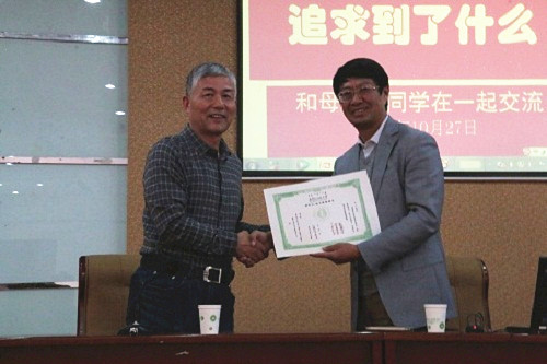 10月27日下午,校友钱江再次回到母校,正式受聘成为我院新闻传播学硕士研究生实践指导教师,并在科技楼报告厅为我院师生做了“我,在这里追求到了什么”的讲座。