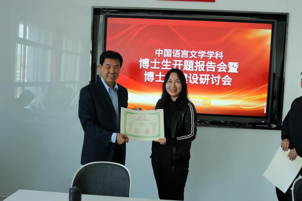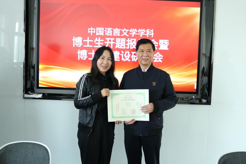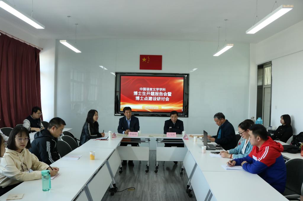 会议讨论了中国语言文学学科博士点建设的相关事宜,充分听取了专家有关师资队伍建设、学科平台建设、学术交流、博士生培养等方面的意见和建议。2019级文献学、文艺学的两名博士生向会议提交了开题汇报,汇报了论文准备情况,与会专家针对论文选题、内容、框架、研究思路等提出了具体建议。