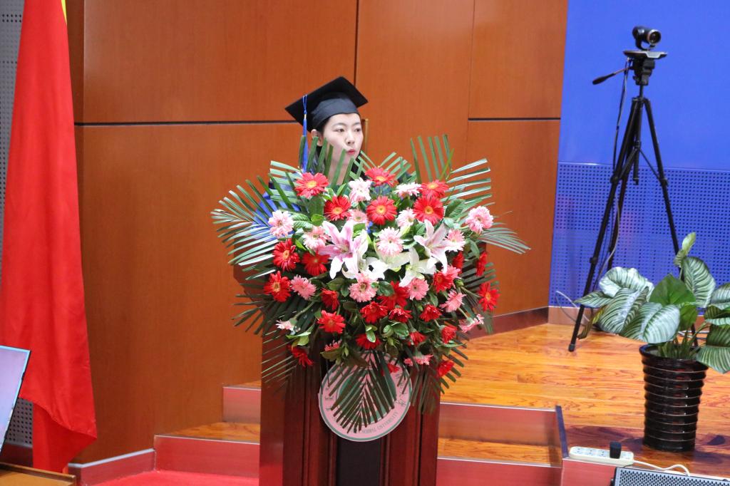 2018级文艺学专业的梁嘉欣代表毕业生发言。梁嘉欣的发言围绕感谢和感恩展开,立志将带着母校的希冀,带着yl7703永利集团领导和老师们的嘱托,背起行囊,踏歌而行。