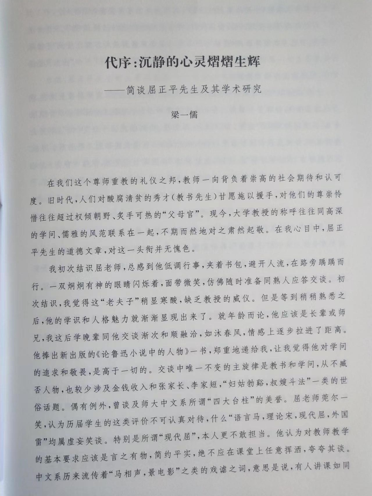 曾经在我院工作过的、86岁高龄的山东大学博士生导师梁一儒教授回忆了与屈先生共事的经历,并对屈先生的为人给予了高度评价:“屈老师是我20几年的良师益友。知识分子的修养和大学教授的风范在屈老师身上得到了生动体现。我们这些后学者要继承屈老师严于律己、纯朴厚道的人品;孜孜不倦、锲而不舍的精神。要戒除与世俯仰、虚浮夸饰的学风,要踏实治学、不慕虚名,坚持独立人格。《屈正平学术精选集》是一项规模浩大的文化工程,体现了编者对屈先生的敬重和热爱。本书的突出特点是在全面收集论文、影像、书信等基础上,展现了屈正平先生在现代文学研究中的真知灼见,该书资料翔实,是屈先生学术思想的一座丰碑。”巩富教授、陶长坤教授、刘文斌教授、韩登庸教授在发言中高度赞扬了屈正平先生宽厚、豁达、谦和、低调的人格魅力,温文尔雅、娓娓道来、妙语连珠的讲课风格,回忆了屈先生曾经在他们作品出版、论文写作等方面给予的无私帮助和鼓励,表达了真诚的感激之情。