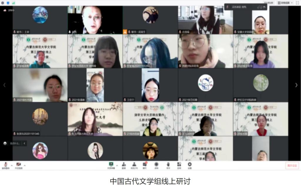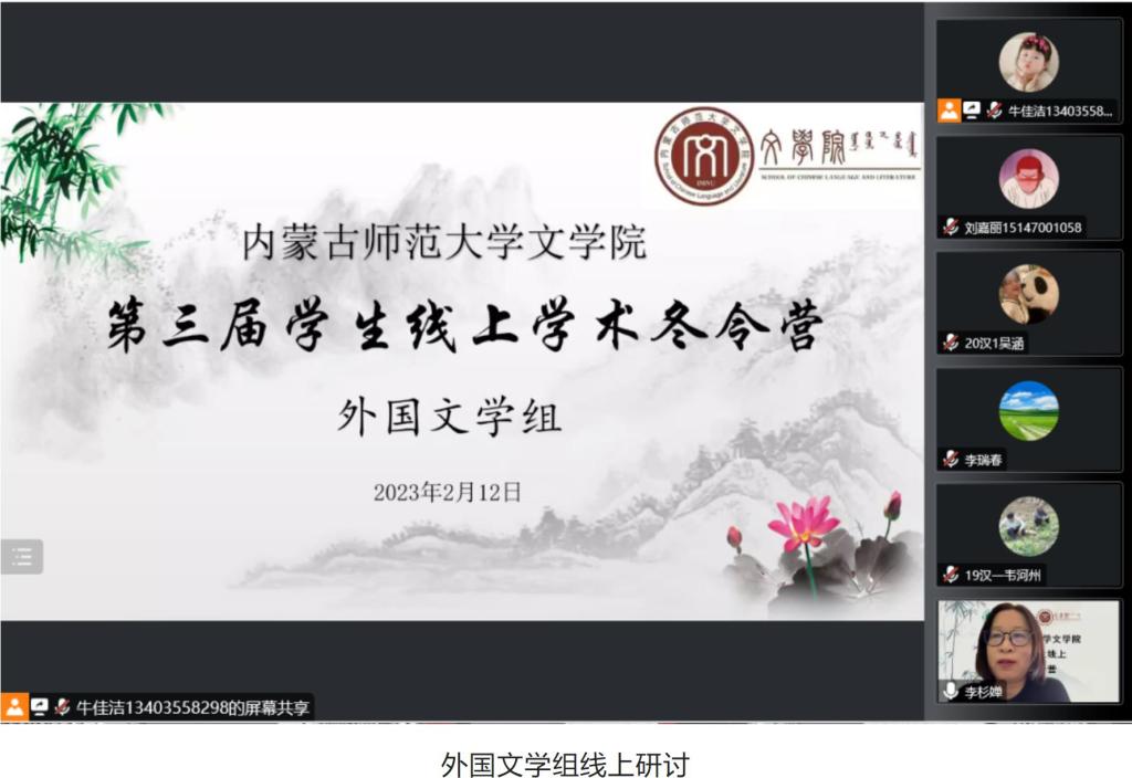 2023年2月12日,为期两天的yl7703永利集团学生线上学术冬令营活动圆满落下帷幕。本次冬令营面向全国高校在读中文专业学生招生,经过严格选拔,共招收学员130人,其中,除本院各年级各专业学生之外,还有来自西安外国语大学、中央民族大学、曲阜师范大学、陕西理工大学、安徽大学、长沙理工大学、呼伦贝尔学院、赤峰学院等高校的学生参加。活动形式主要包括知名专家学术讲座、校友报告、学术论文(读书报告)汇报与点评、营员研讨等内容。