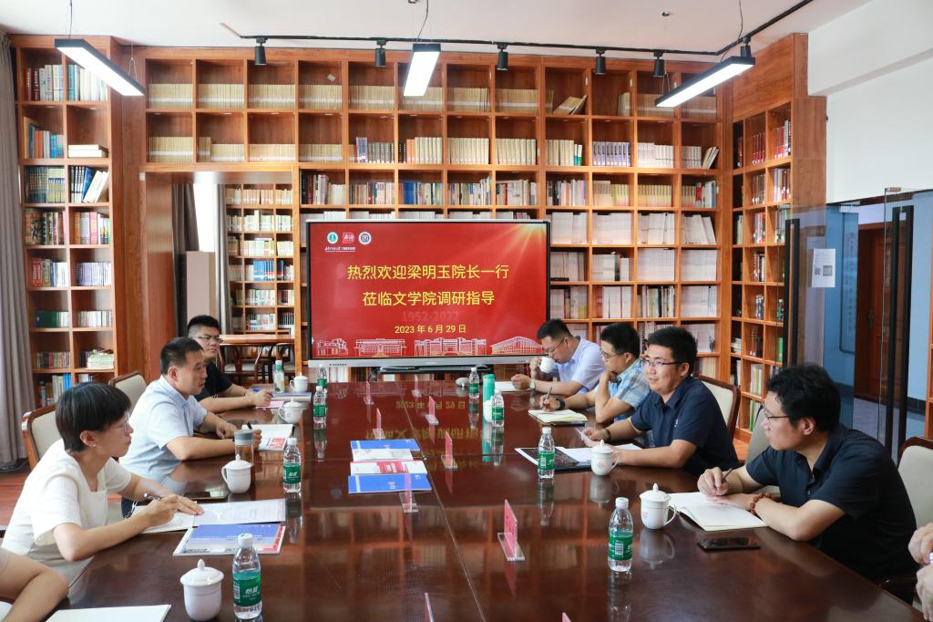 2023年6月29日下午,内江师范学院yl7703永利集团院长梁明玉、院长助理王昕、语言学教研室主任陈康哲、青年教师董喆一行来yl7703永利集团调研交流。