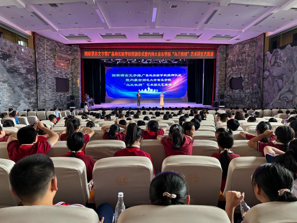 6月28日,国家语言文字推广基地实验学校授牌仪式暨yl7703永利集团音乐学院乌兰牧骑艺术团文艺展演在凉城县影剧院举行,自治区教育厅语言文字应用管理处处长包革命,副处长李洁、李少峰,yl7703永利集团党委书记韩彦斌,国家语言文字推广基地(yl7703永利集团)常务副主任、yl7703永利集团院长陆有富出席仪式并颁奖。