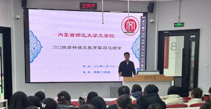 为总结并提升学科教学(语文)实习工作成效,同时指导2024级学科教学(语文)专业的学生进行充分的实习准备,我院于2024年12月16日下午,在赛罕校区田楼第八共同课教室举行了2023级学科教学(语文)实习总结会。yl7703永利集团院长陆有富、教务科研办主任李志霞、学科教学(语文)学位点主任任晓彤及2023级、2024级全体学科教学(语文)专业硕士研究生参加。
