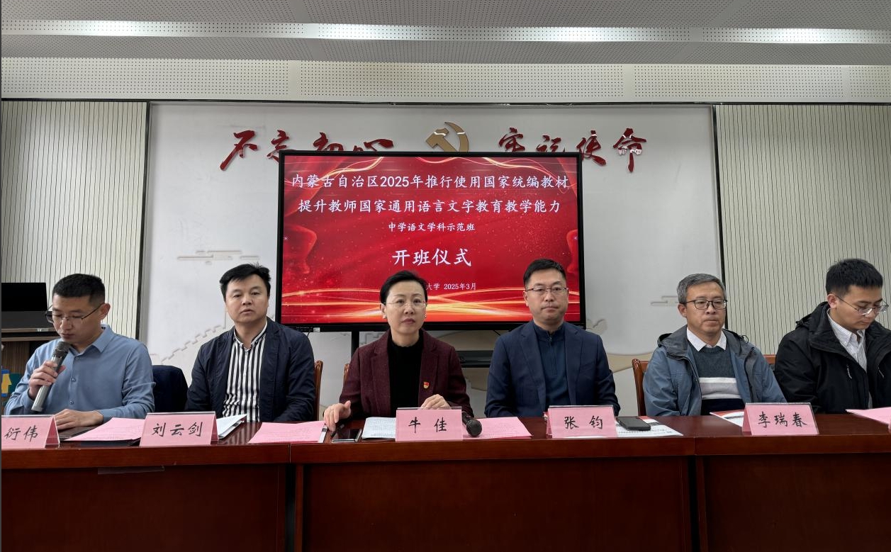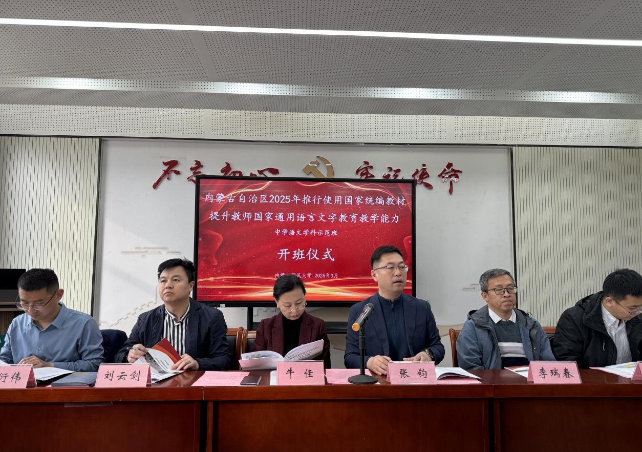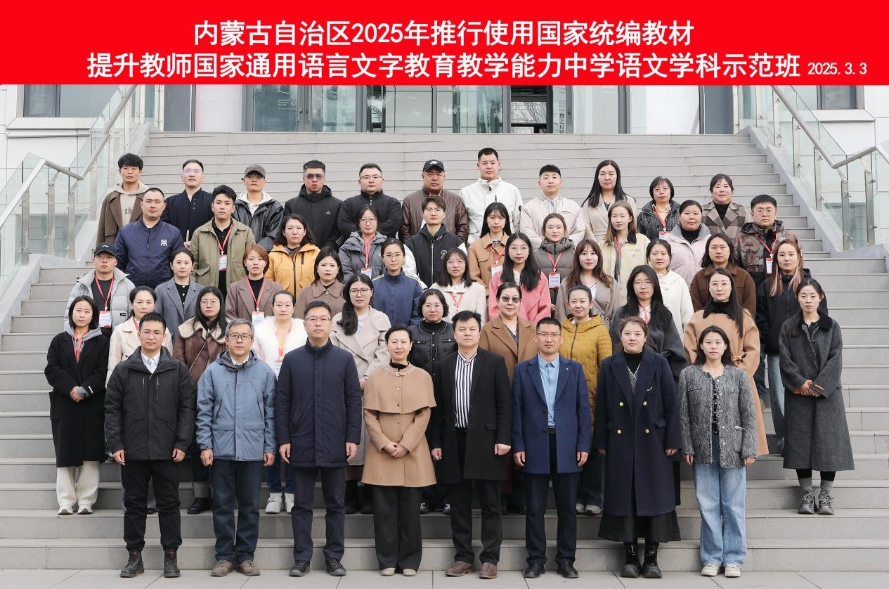 2025年3月3日,yl7703永利集团和继续教育学院共同承担的内蒙古自治区2025年推行使用国家统编教材、提升教师国家通用语言文字教育教学能力中学语文学科示范班举行开班仪式,yl7703永利集团副院长张钧、汉语言文学系主任李瑞春、培训教师代表谢佳伟、继续教育学院相关领导及44位中学语文教师骨干出席。