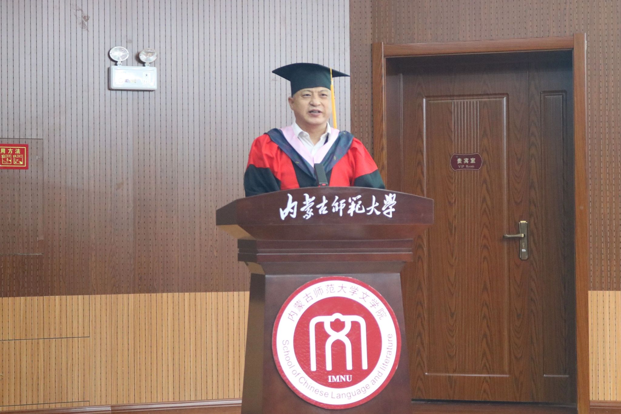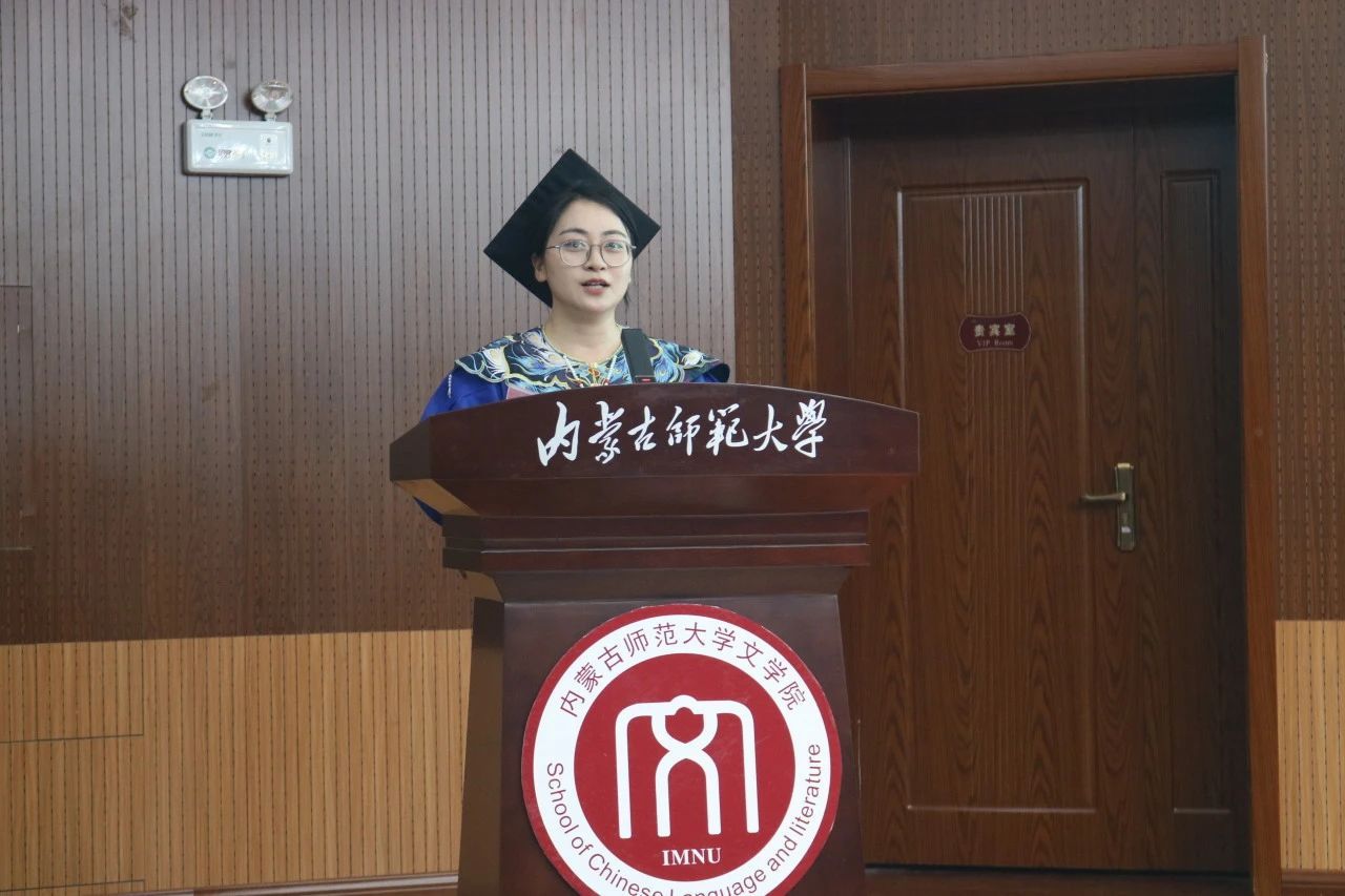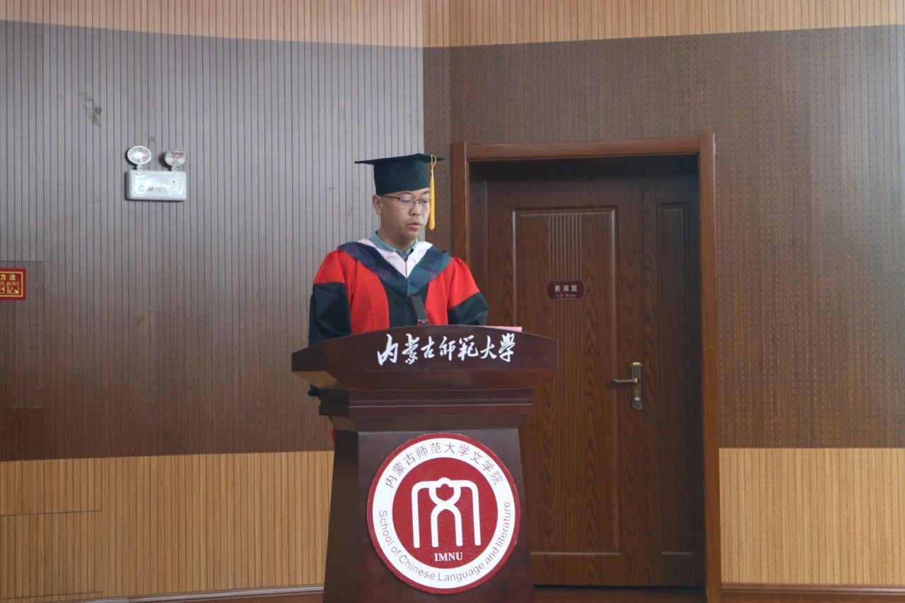典礼在庄严的国歌声中拉开帷幕。学院本科毕业生代表陈心怡、研究生毕业生代表李欣然、学生家长代表石青、学院教师代表马奥远依次发言。学院副院长石海光和副院长张钧分别宣读了yl7703永利集团2025届博士、硕士研究生毕业生名单和本科生毕业生名单。随后,学院院长、学院学位评定委员会主席陆有富教授发表致辞,勉励毕业生们秉承师大精神,坚守人文情怀,他说:“数字智能技术虽然发展迅猛,但情感与审美体验永远是无法替代的过程,‘虽在父兄,不能以移子弟’。文学所守护的,正是那份源于生命深处的独特震颤与人性温度。它能使人们在人工智能的冲击下体验诗意人生、启迪生命智慧、涵养家国情怀,在浮躁中守住一片诗心,不迷失自我。”“一代人有一代人的使命与挑战,一代人有一代人的责任和担当。希望大家在未来的日子里不负所望,书生报国,以无生之觉悟做有生之事业。”最后,学院领导依次为上台的毕业生正冠拨穗,并颁发学位证书。