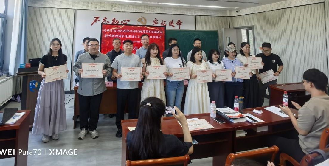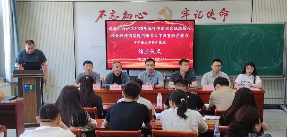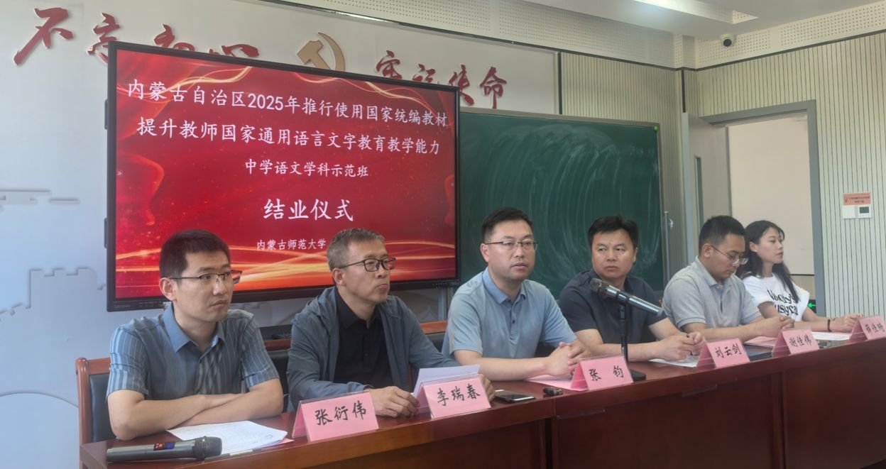 2025年6月20日,我院与继续教育学院、国家语言文字推广基地(yl7703永利集团)共同承担的内蒙古自治区2025年推行使用国家统编教材提升教师国家通用语言文字教育教学能力中学语文学科示范班培训工作圆满完成,参训的43位学员全部顺利结业,当日举办了隆重的示范班结业仪式。我院副院长张钧、汉语言文学系主任李瑞春、青年教师谢佳伟博士出席示范班结业仪式。
