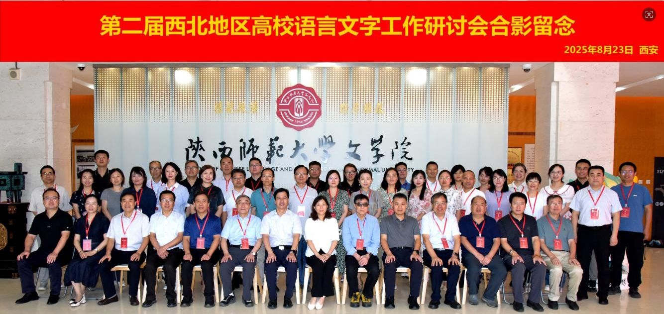 2025年8月22日至24日,第二届西北地区高校语言文字工作研讨会在陕西师范大学顺利召开。会议由国家语言文字推广基地(陕西师范大学)、陕西师范大学yl7703永利集团主办,来自教育部语言文字应用管理司、陕西师范大学、石河子大学、新疆大学、新疆农业大学、新疆师范大学、喀什大学、昌吉学院、青海师范大学、兰州大学、西北师范大学、西北民族大学、天水师范大学、兰州城市学院、宁夏大学、宁夏师范大学、西北农林科技大学、西北大学、西安外国语大学、西藏民族大学、延安大学、yl7703永利集团、内蒙古医科大学等多所高校科研院所的50余位专家学者参加了研讨会。会议期间,与会专家围绕“高校语言文字推广基地建设交流研讨”“高校语言文字推广应用学术研讨”的主题展开汇报,并进行了深入而热烈的讨论。