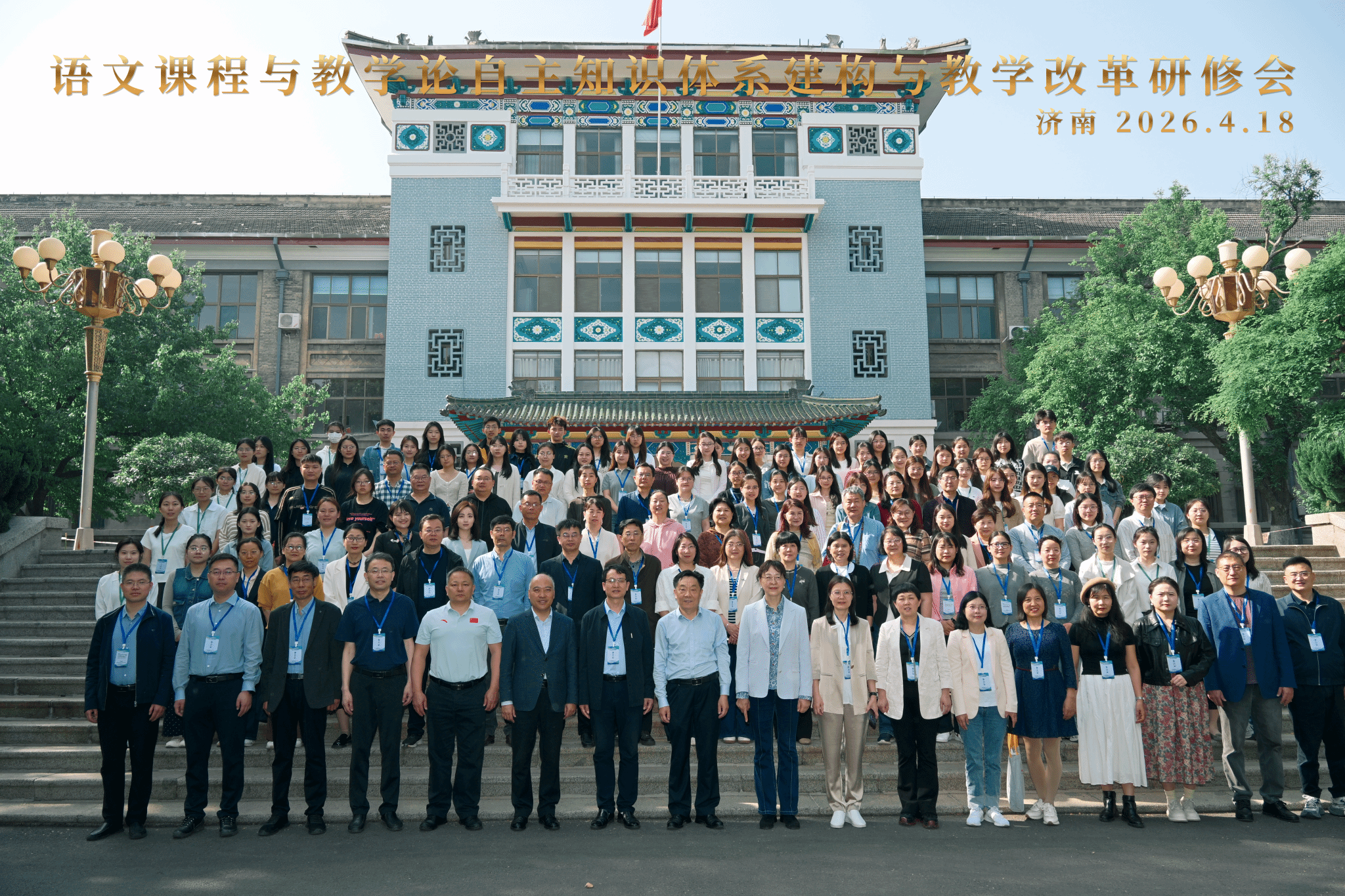 2026年4月17日至19日,“语文课程与教学论自主知识体系建构与教学改革研修会”在山东济南召开。本次研修会由山东师范大学、高等教育出版社联合主办,山东师范大学yl7703永利集团承办,高等教育出版社山东省教学服务中心协办,来自北京师范大学、浙江大学、四川师范大学、西南大学、杭州师范大学、河北师范大学、江苏师范大学等高校的语文教育领域的一百余位专家学者参加会议。我院张钧教授应邀参会。