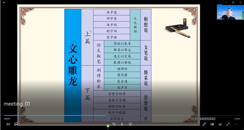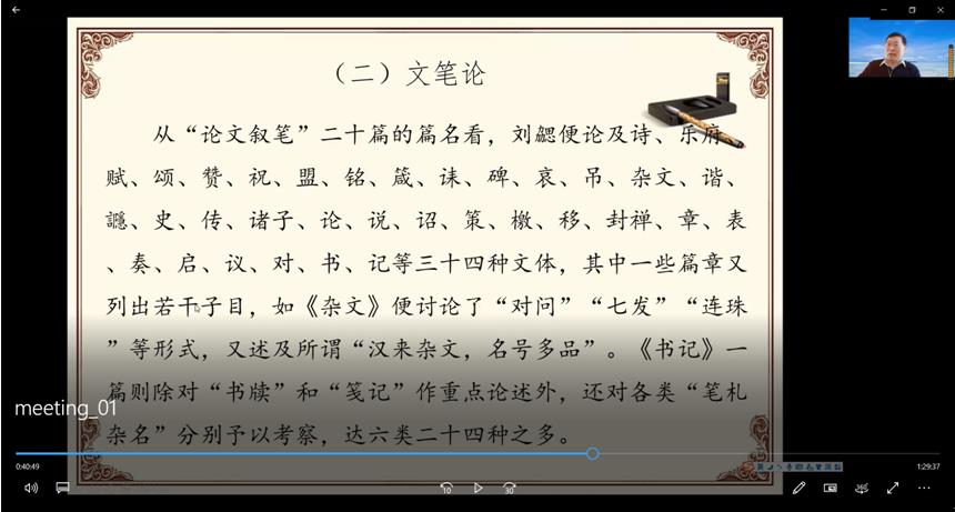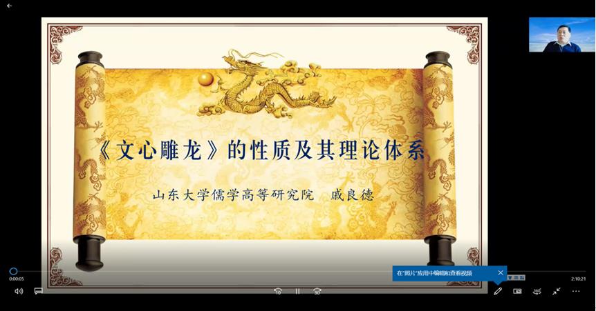 2022年5月15日下午,我院邀请中国《文心雕龙》学会副会长、山东大学儒学高等研究院教授、博士生导师戚良德教授作了题为 “《文心雕龙》的性质及其理论体系”的学术讲座。讲座在腾讯会议平台举办,由文艺学点位负责人万奇教授主持,白建忠教授作评议人。