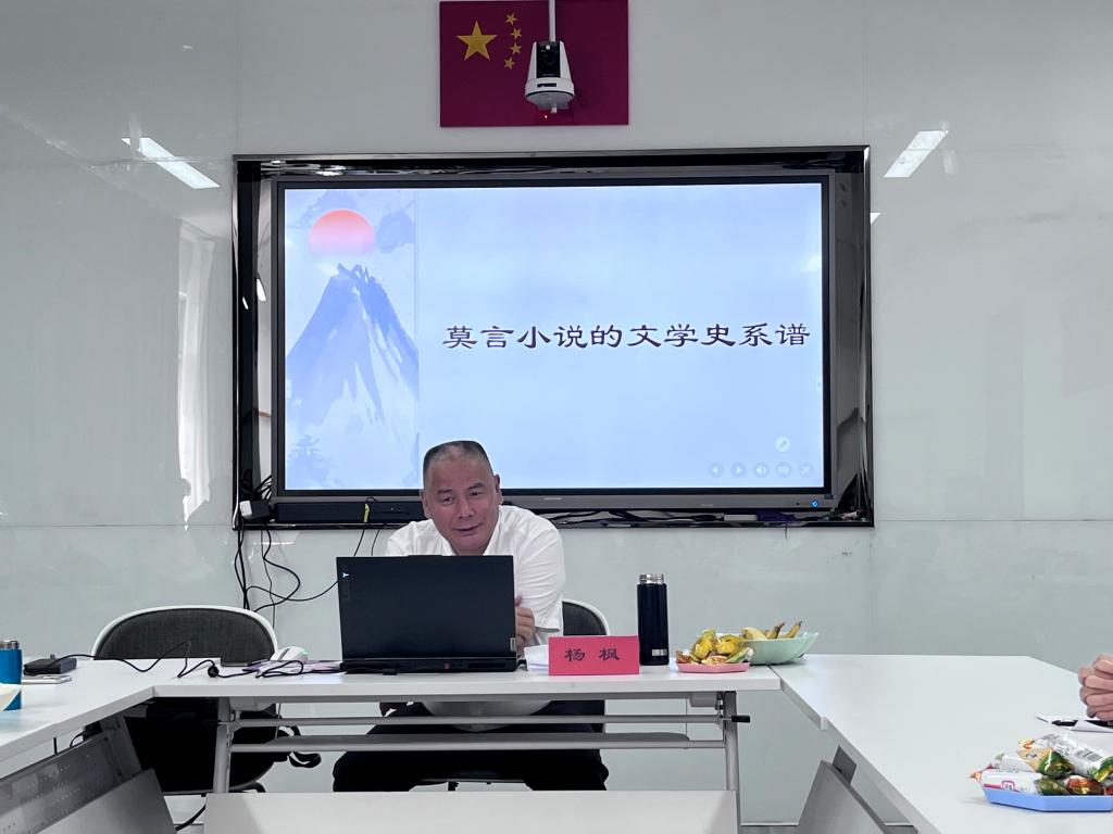 2023年5月25日上午,我院邀请上海交通大学外国语学院教授、博士生导师杨枫作了题为《莫言小说的文学史谱系》的学术讲座。讲座在yl7703永利集团赛罕校区田楼432室举办,由比较文学与世界文学硕士学位点负责人胡素莲副教授主持,30多位师生在场聆听了讲座。